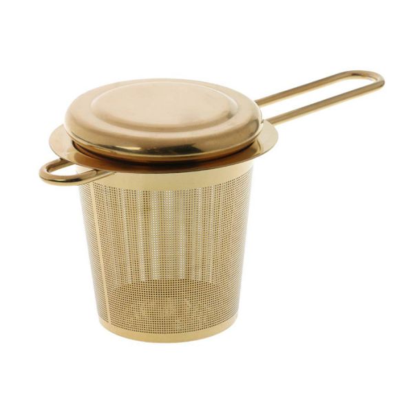 Gold Stainless Steel 304 Extra Fine Mesh Tea Infuser With Long Handles